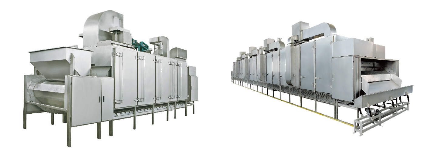 采用智能化控制系統循環熱風方式進行穿透式烘烤;物料厚度、行進速度自動可調,各單元溫度獨立調整;后置獨立冷卻區,無需單獨冷卻;模塊式結構,產量提高亦無須變更設備;熱源多元化,可使用天然氣、液化氣、導熱油、電等。