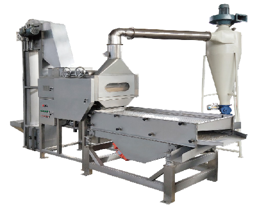 將經烘烤/干燥過的花生米,進行脫皮、分選的設備。主要應用于花生醬、花生糖、花生奶/露、花生碎等產品的前期處理。